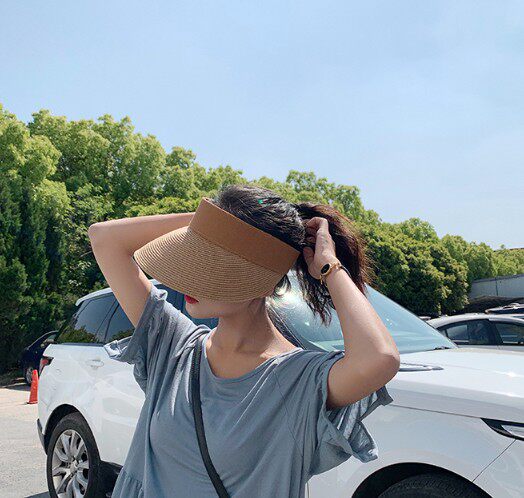 Day Department 100 hitchhiking hat Awning Hat Straw Chair-topped Hat Casual Art Grass Hat Beach Sunscreen Sunhat Sunhat Female Summer