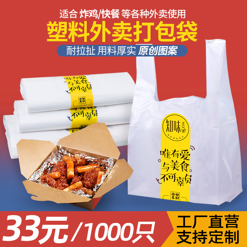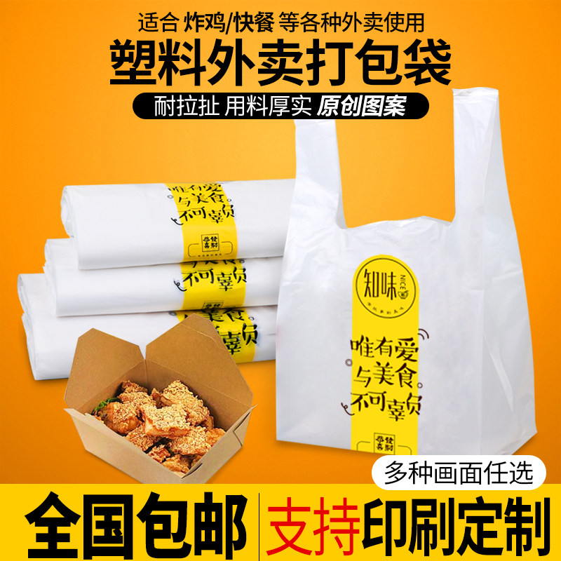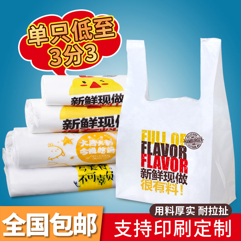 Disposable bag food plastic bag barbecue burger shop fried chicken steak white delivery packing bag portable convenient bag