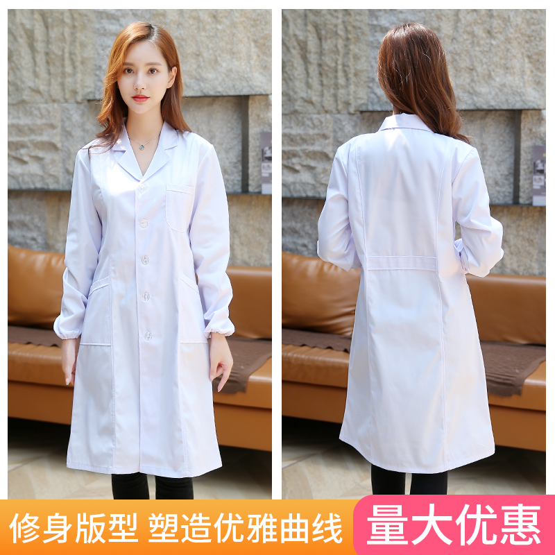 White coat long sleeve elastic cuffs female doctor clothing thin clothes experiment student Beauty Salon nurse work clothes
