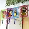 Yellow window grille A red window grille A pink window grille A green window grille An orange window grille A purple window grille A blue window grille A Peking Opera character (random hair) A white embryo shape