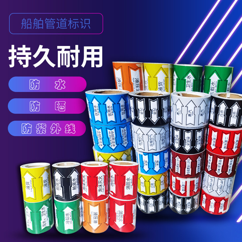 Marine Piping Logo Reflective Color Ring Ribbon Flow To Arrowhead Ship Imo Logo Custom Seawater Light Water Sump Oil Water Line Identification Marine Line Duct Tape Duct Color Mark Main minor