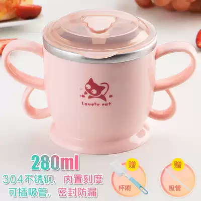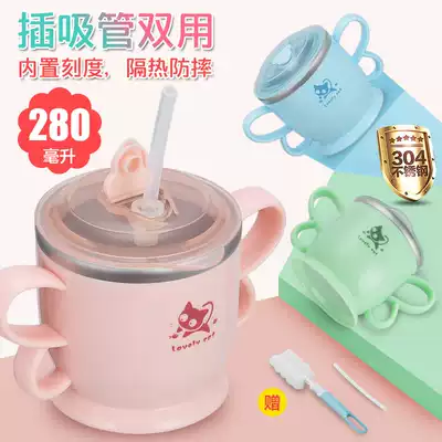 Children's Milk Cup with scale anti-fall breakfast cup stainless steel water Cup home baby drinking cup kindergarten mouth Cup