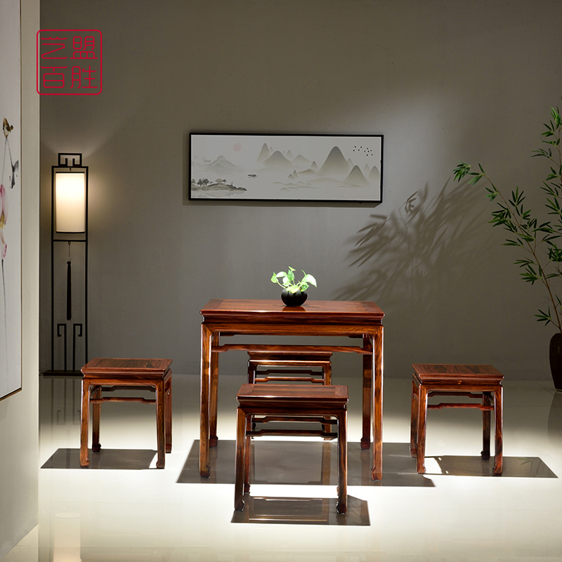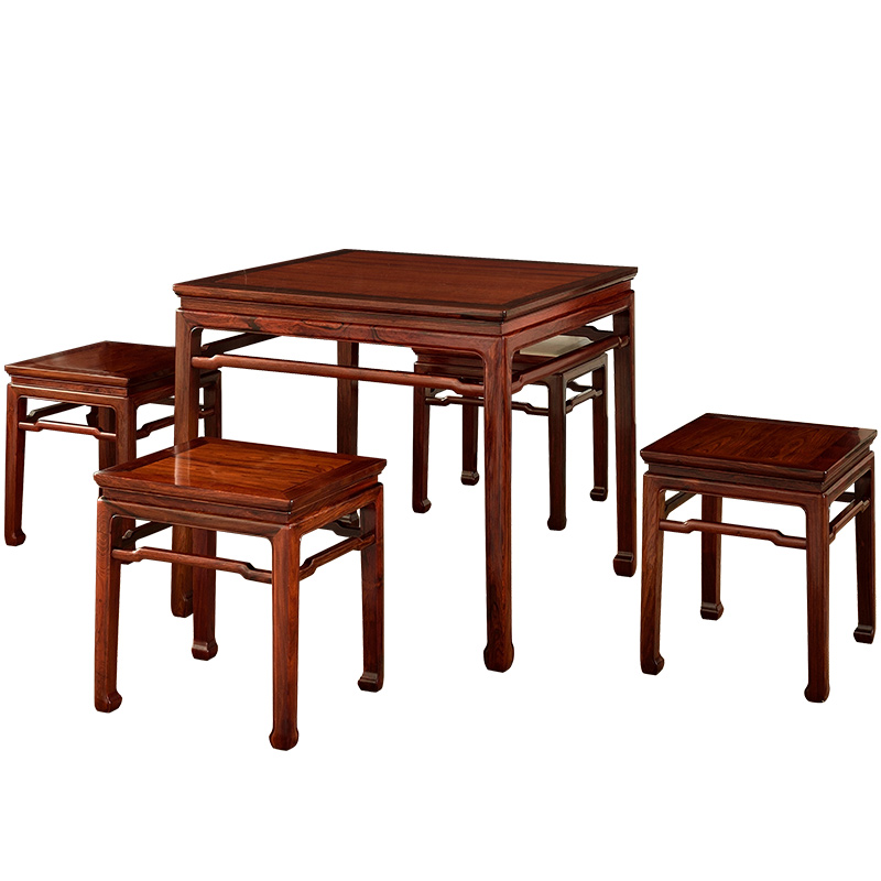 Art franchise Hundred Wins Red Acid Branches Table of Four Fairy Table One Table Four Stool Combinations Microconcave Yellow Sandalwood Red Wood Square Table Dining Table