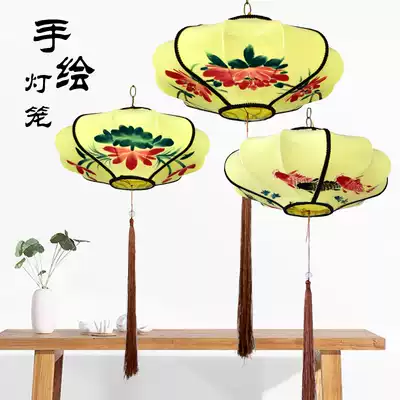 Chinese antique lantern Classical hand painting Ink painting lantern Hotel dining room Teahouse club fabric decoration chandelier