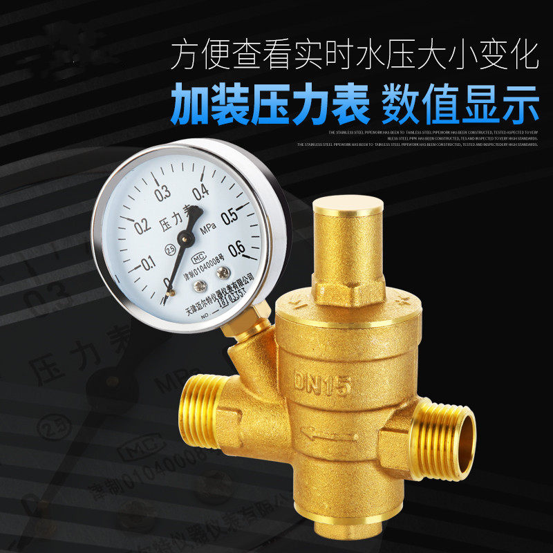 Pressure reducing valve 4 points Outer wire pressure reducing valve 4 points Outer ribbon pressure gauge water inlet single joint pressure reducing valve 4 points Outer inner wire water inlet single joint joint pressure reducing valve with pressure gauge water outlet single joint joint pressure reducing valve 4 points inside and outside silk out of water single live