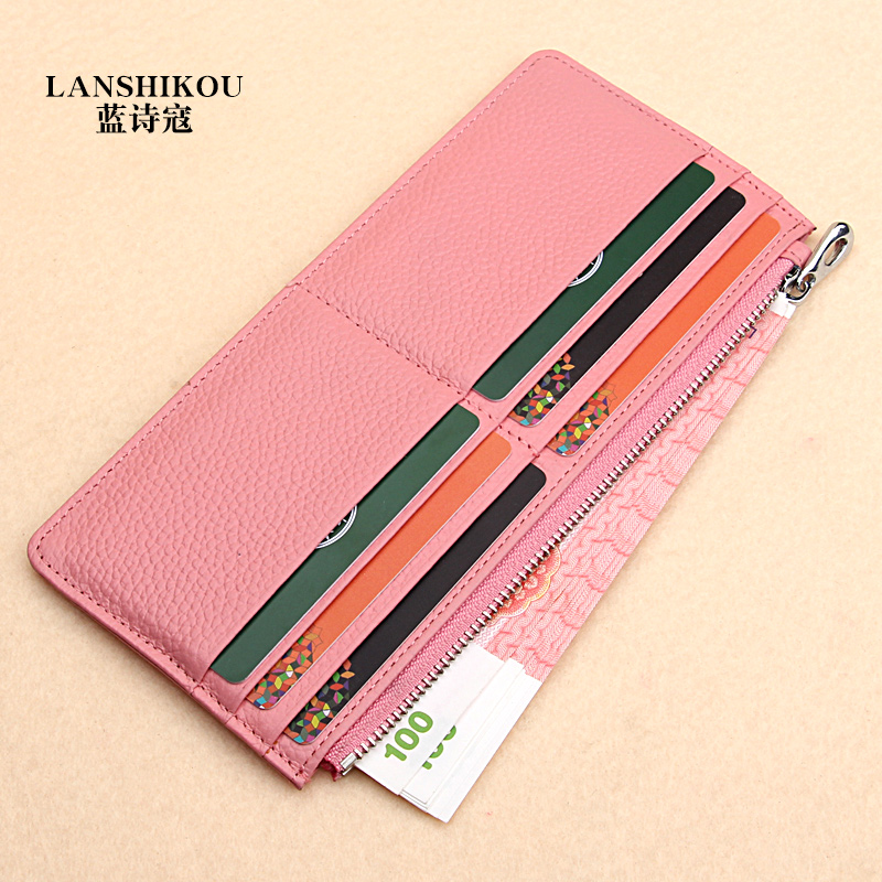 Multi-Position Card Bag Woman Type Genuine Leather Card Holder Delicate Card Bag Silver Line Card Bag Upscale Sleeve Ultra Slim Long Version Wallet