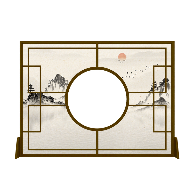 New Chinese Screen Large Partition Living Room Solid Wood Hollowed-out Hotel Tea Room Door Face Xuanguan Creative Landscape Background Seat Screen