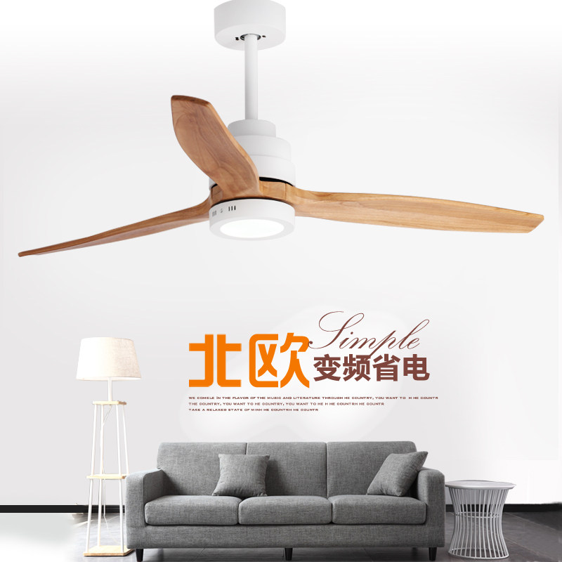 Living room dining room ceiling fan lamp frequency conversion solid wood ceiling fan lamp chandelier Nordic simple fashion chandelier Bedroom remote control white