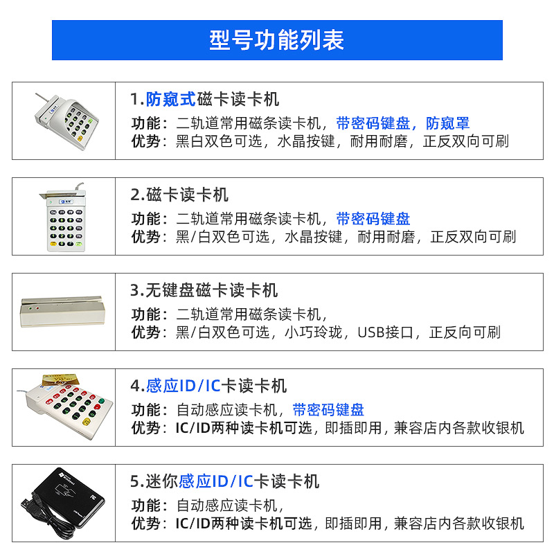 Magnetic stripe card reading machine 800U white induction IC card reader 95C induction ID card reading machine 95D anti-peep magnetic stripe card reader 900U white mini-induction IC card reader 20C fan
