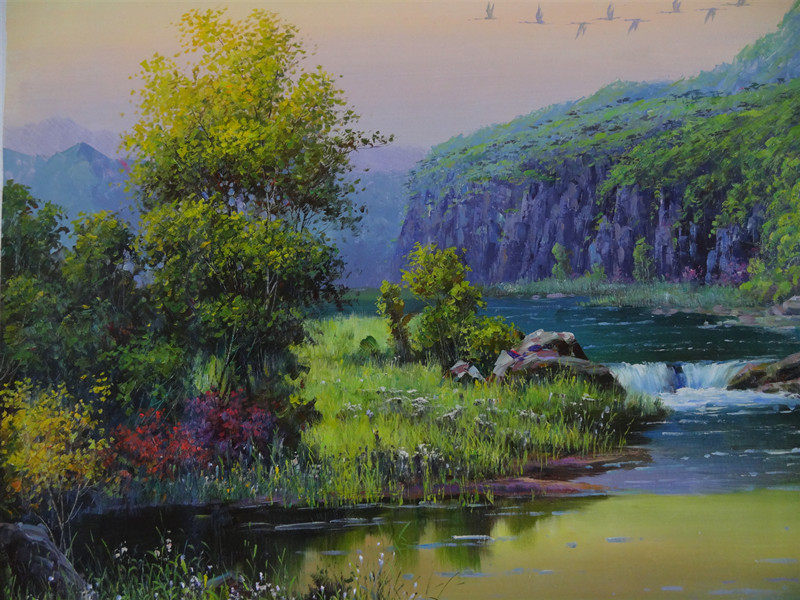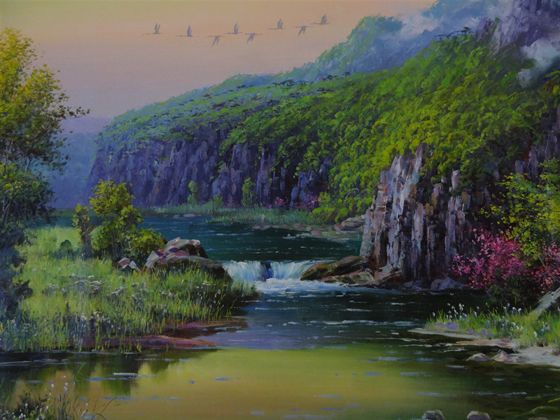 Antique Collection Boutique Korean Landscape Landscape Old Cloth Oil Painting Original Painting Works with Name