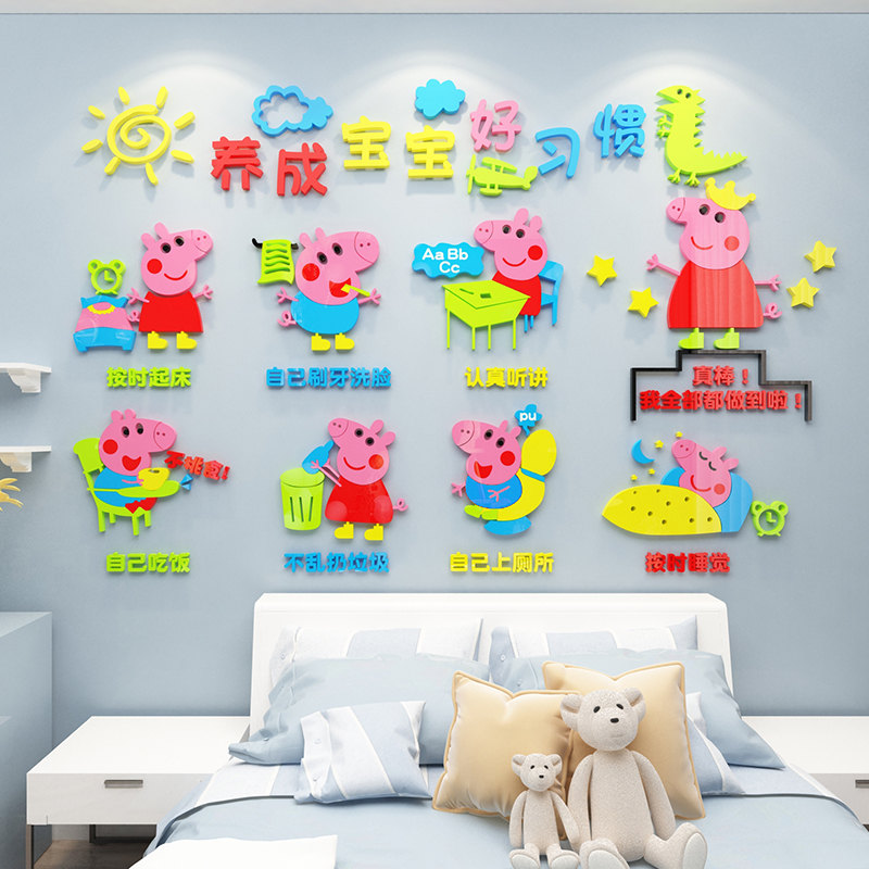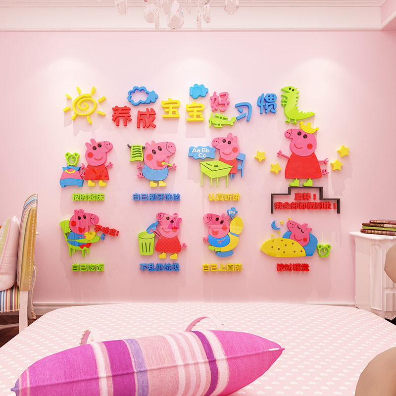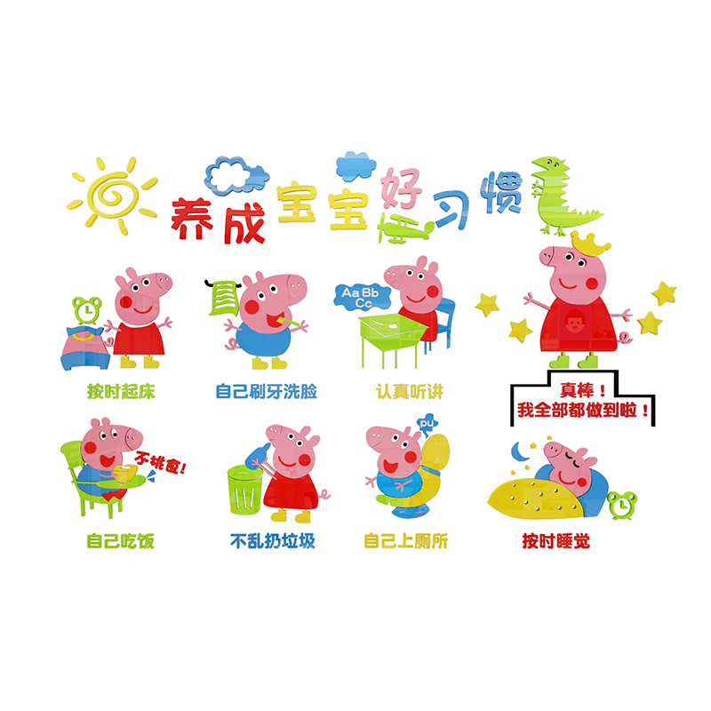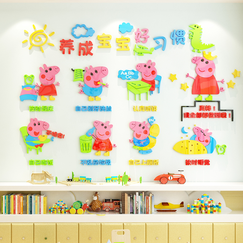 Kindergarten wall decoration form good habits Theme wall environment layout Early education class background wall stickers 3D three-dimensional