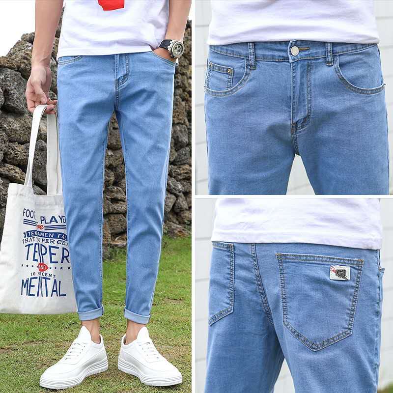Summer new light color 90% jeans Men's small feet repaired with Korean version Trend Tide Cards 100 Hitch Casual 9 Pants