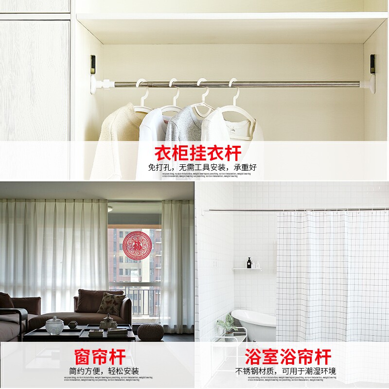 Stretch room stick horizontal bar stainless steel sling wardrobe clothes bar wardrobe hanging hanger telescopic hanging beam