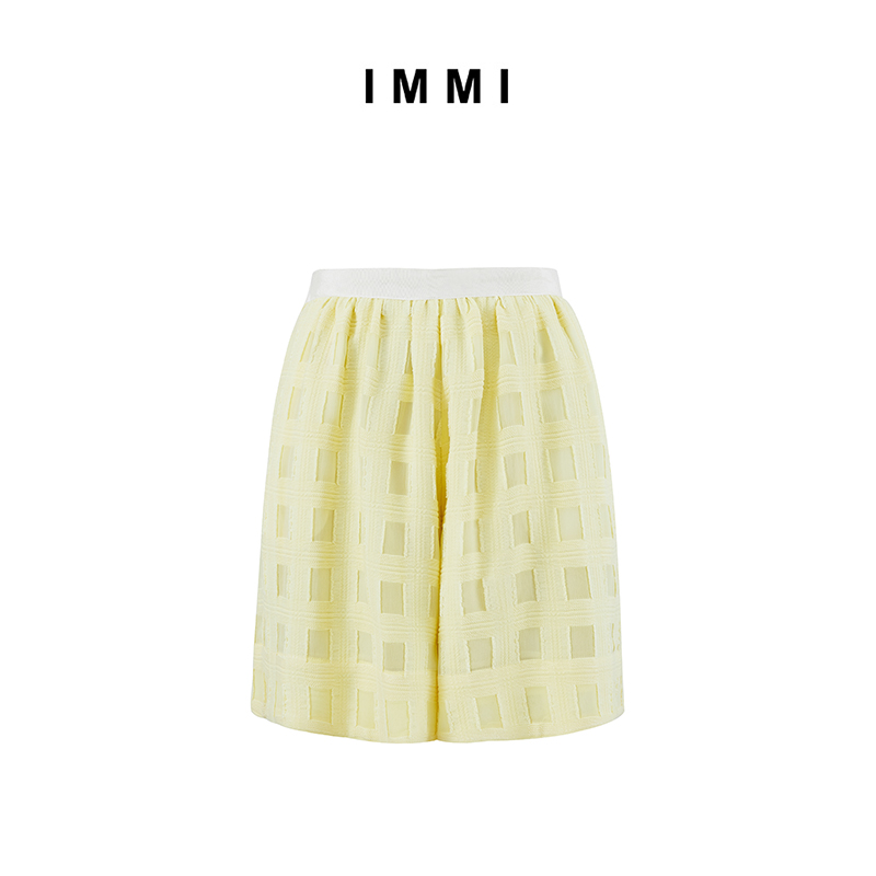 (Designer brand IMMI) lemon yellow green plaid jacquard chiffon fairy culottes 191SP015