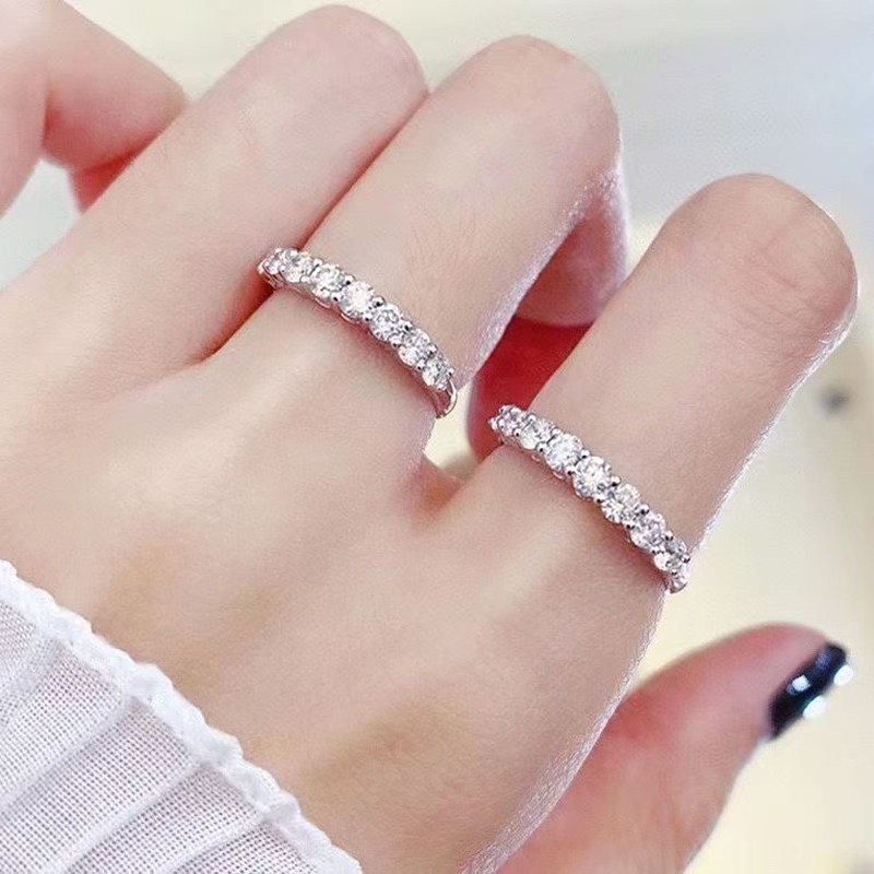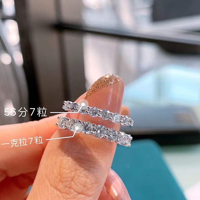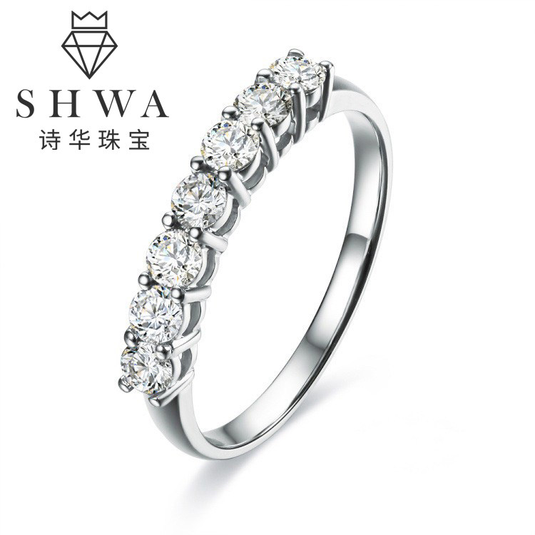 Shihua Jewelry 18K gold seven diamond row ring diamond ring female real diamond matching ring 30 points diamond ring tail ring