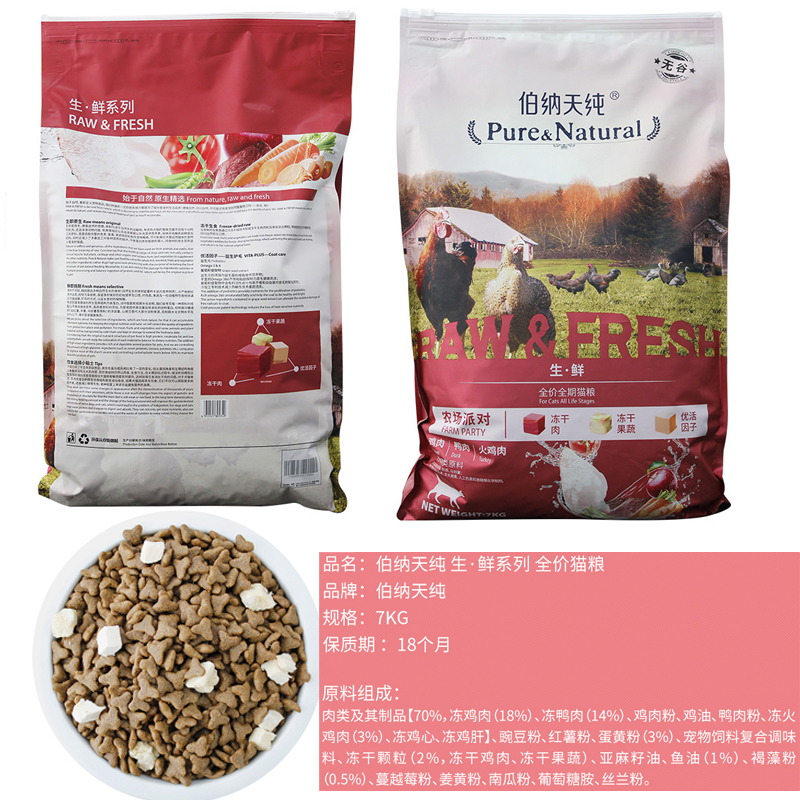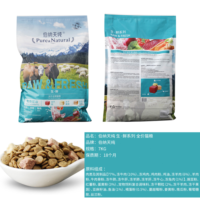 Bernardine pure cat food fresh freeze-dried cat food 7kg full price adult cat staple food cat feed pet cat dry food