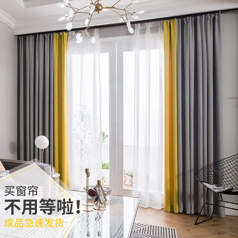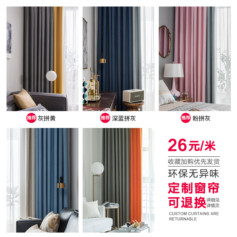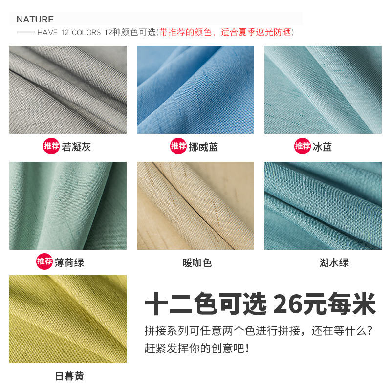 The Nordic style of style,Roman curtain common pleat-pleated perforated curtain window mantle curtain wearing rod curtain