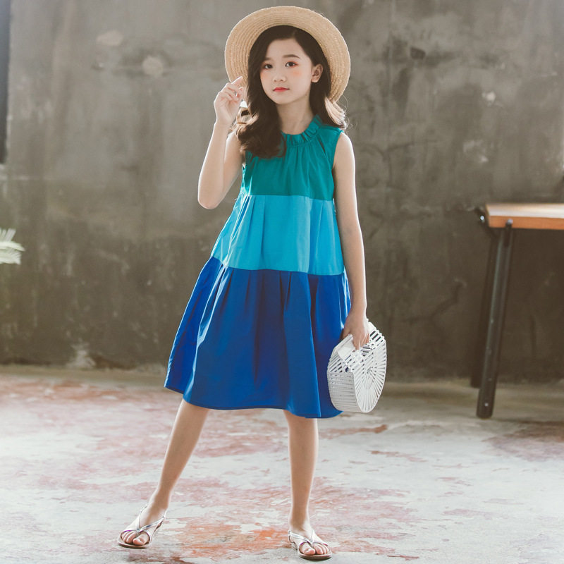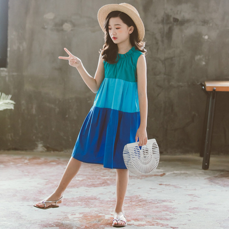 2020 Summer Children's Clothing Girls' Sleeveless Dresses Children's Middle and Big Children's Contrast Color Parent-child Holiday Skirts Mother and Daughter Beach Skirts