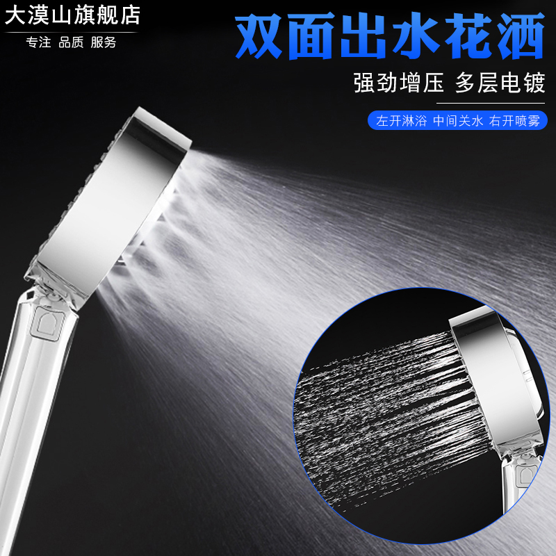 (Silver electroplating) Shaking head with double-sided water outlet Nail-free ABS wall seat (smooth glazed surface is recommended) Nail-free space aluminum wall seat (smooth glazed surface recommended) Double-sided shower head