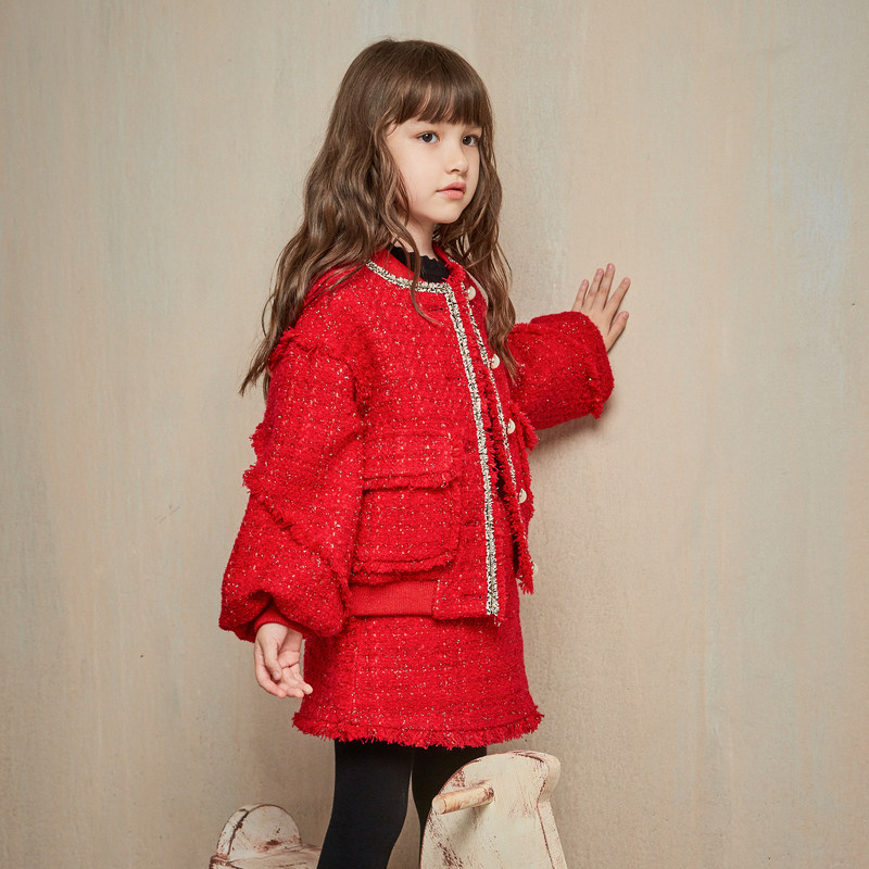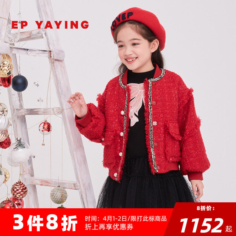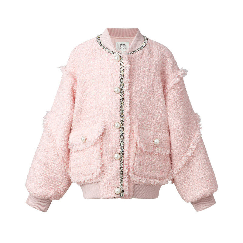 EP YYing children's clothing girl's autumn winter new lantern sleeve foreign style fashion small fragrant wind coarse flowers and children jacket trendy