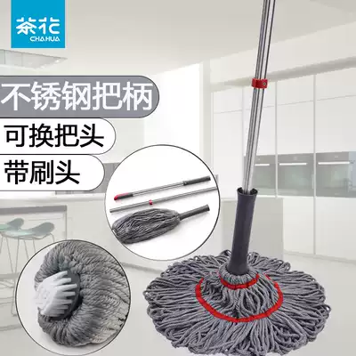Camellia self-screwing water mop Household rotating ordinary floor mop cloth hand-washable stainless steel long rod lazy squeeze water mop