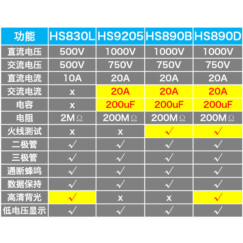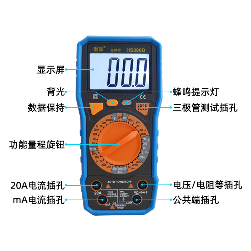 Hengsen full protection digital multimeter anti-burning universal meter HS890D student electrical and electronic maintenance instrument
