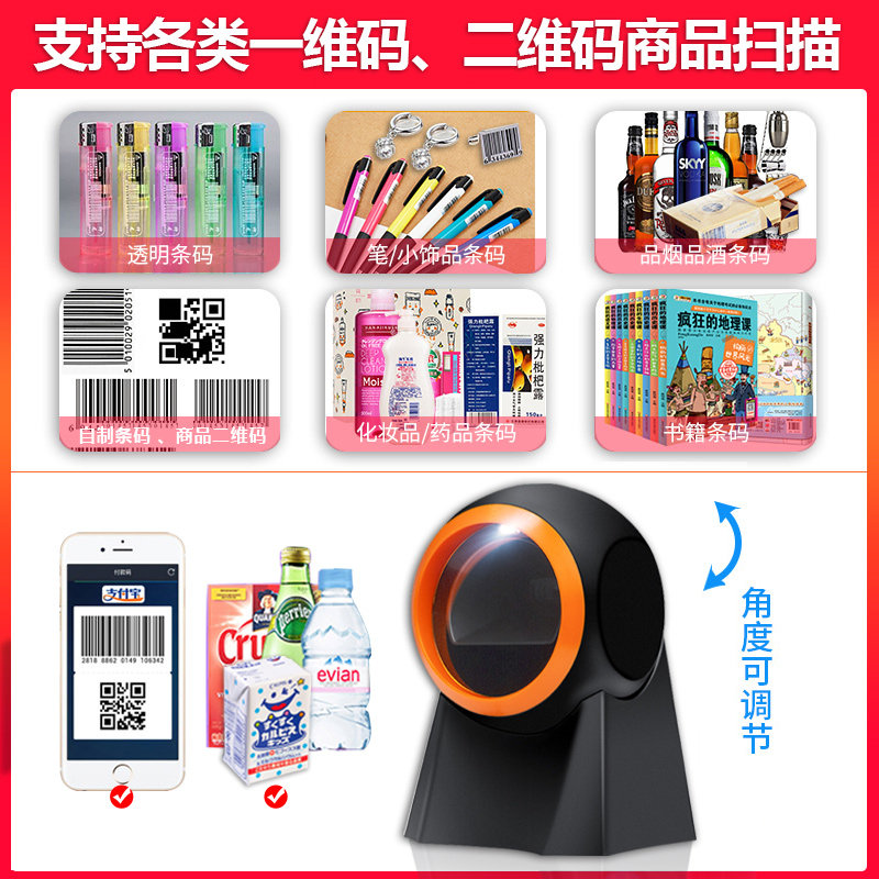 Love Treasure Sweep Platform Supermarket Collection Silver Laser Barcode Scanner Scanner Minder Micro-Credit Alipay Two-dimensional Code Collection