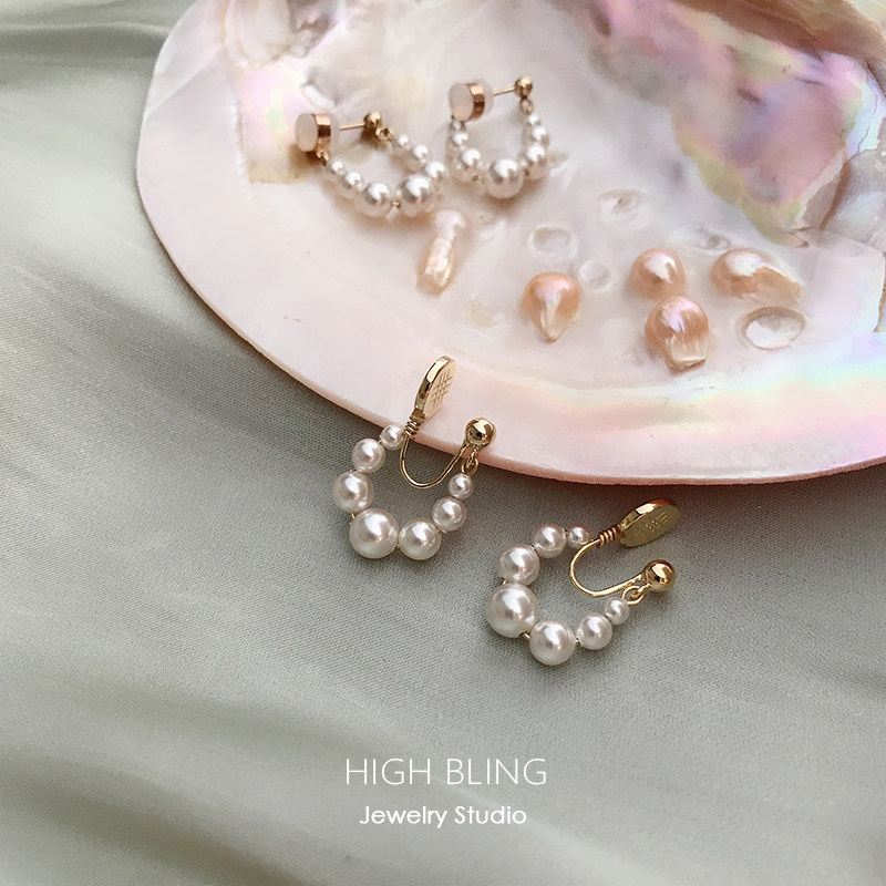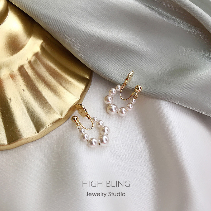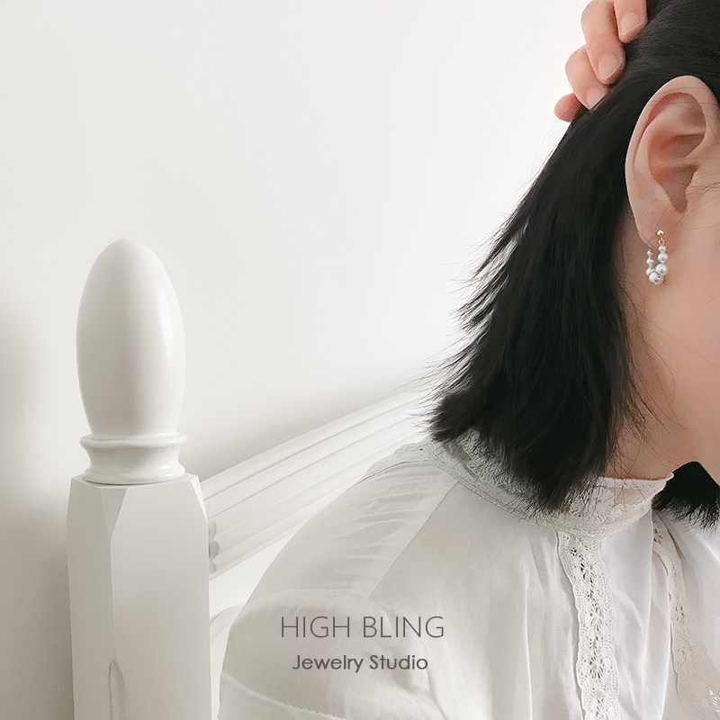 HighBling retro refined French style pearl rear hanging silver needle ear-ear ring female no-ear-hole mosquito-repellent coil ear clip
