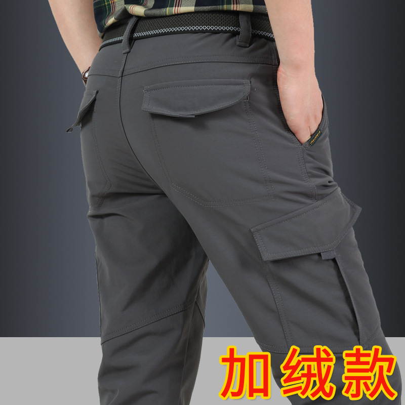 JPDUN men's pants large size assault pants men's winter outdoor tactical pants plus fleece fleece men's loose windproof pants