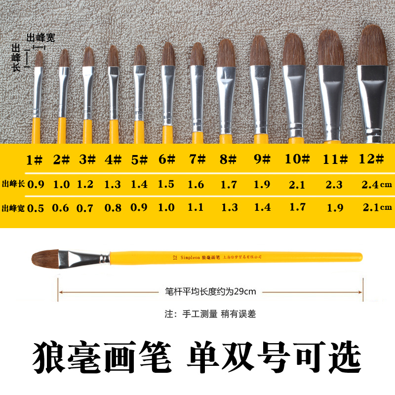 Wolf Miller Powder Paint Paintbrush Set Nylon Fur Watercolor Oil Painting Propylene Students Use SIMPLEOA Love Painted Fine Arts Special Sector Platoon Pens Wolverine Flat Heads Pen Brush Fine Art Painting Beginners