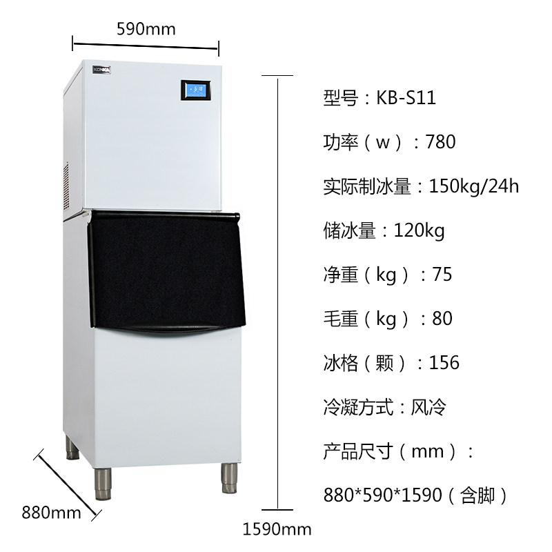 Kangjia KONKA fully-automatic commercial ice maker Large capacity 160kg large milk tea shop KTV Fire pot Shop Hotel
