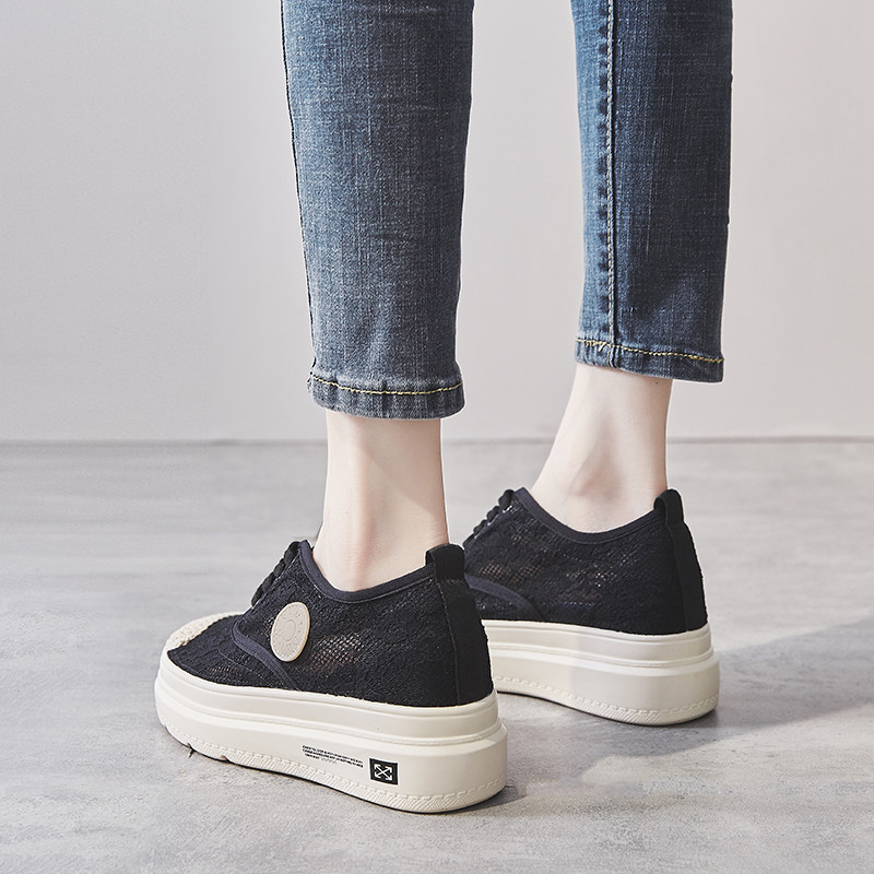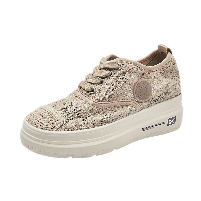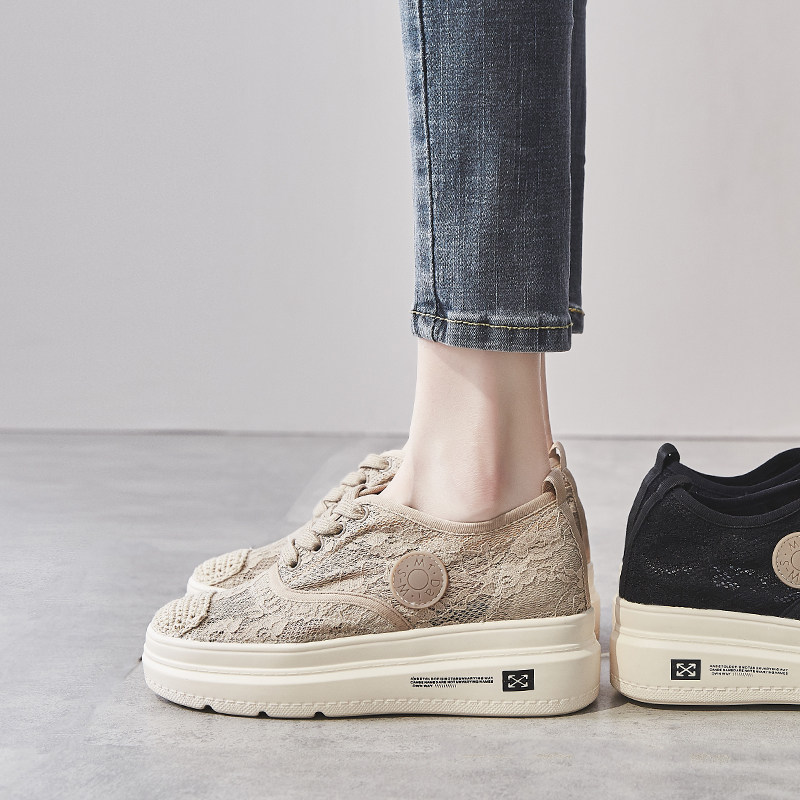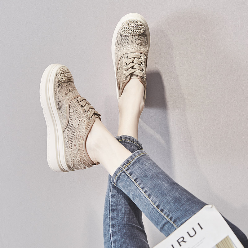 Net face breathable Lefus shoes 2022 new net red 100 lap thick undergrass woven with heightening pine pastry lace fisherman shoes woman