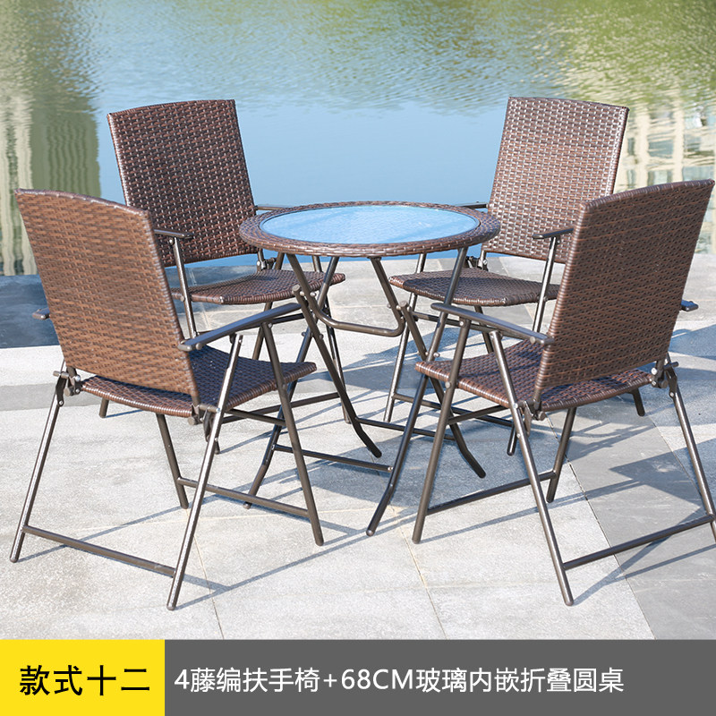 Outdoor leisure milk tea cold drink barbecue shop table and chair combination rattan glass folding light rectangular round table and chair set - Taobao