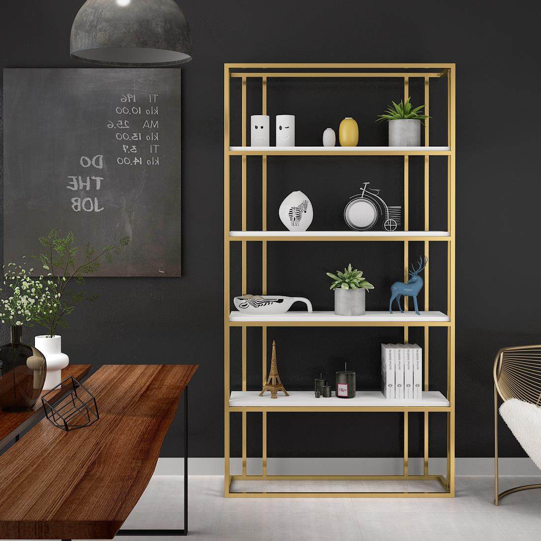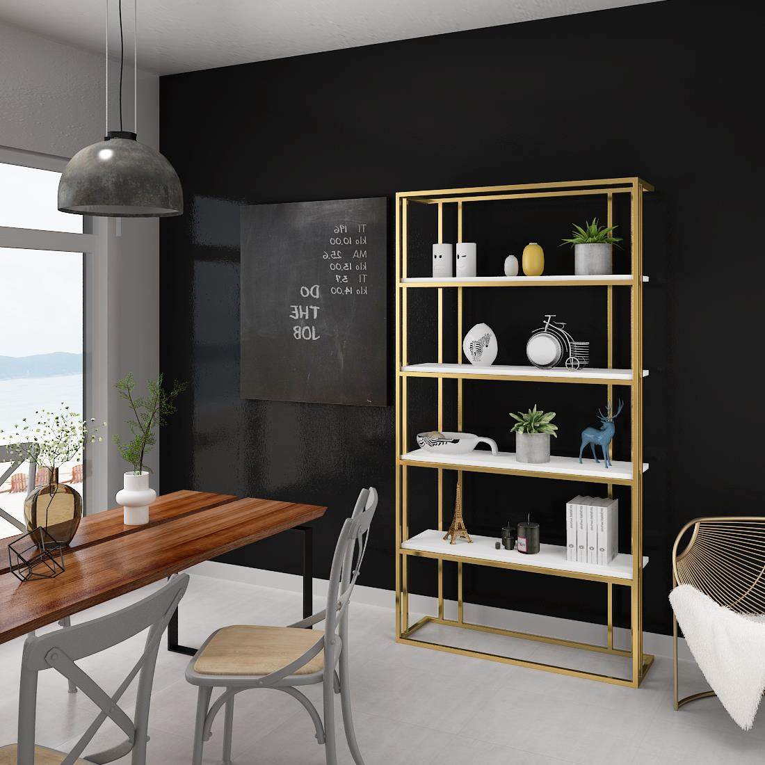 Modern simple wrought iron shelf floor-to-ceiling golden Nordic bookshelf creative shelf living room compartment display cabinet