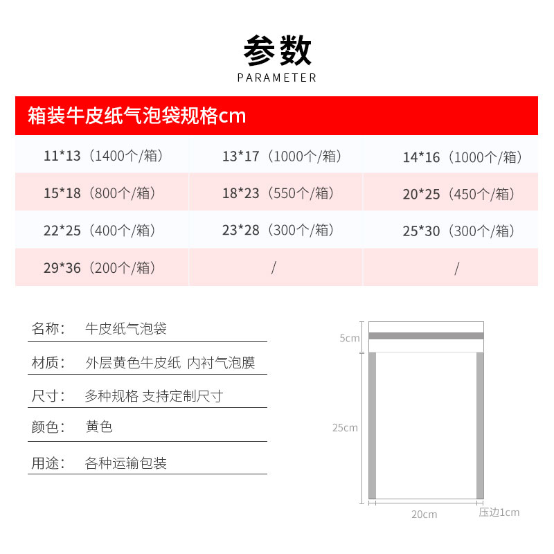Yellow kraft paper bubble envelope bag thick foam bag mobile phone case express packaging bag pearlescent film bubble bag