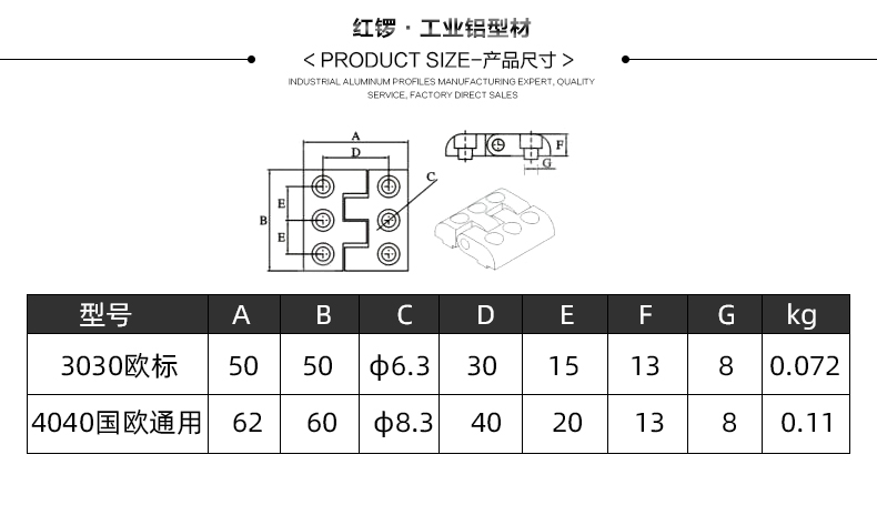 Red gong aluminum milking material accessories hinge connection finishing fixed aluminum hinge thickened type special 40 door hinge with groove