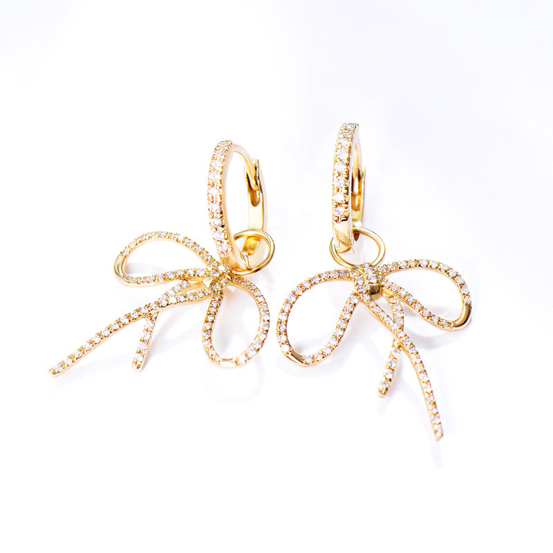 Nova Color Treasure 18k Gold Butterfly Knot Diamond Earnail Woman a three-wearing diamond pendant necklace locked bone chain