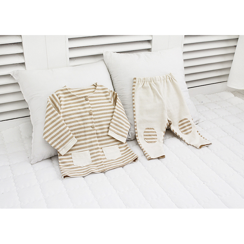 Organic cotton colored cotton pure cotton stretch knitted fabric yarn-dyed horizontal stripes imported baby underwear clothing fabric