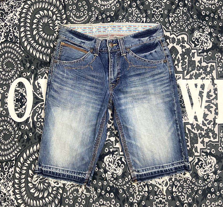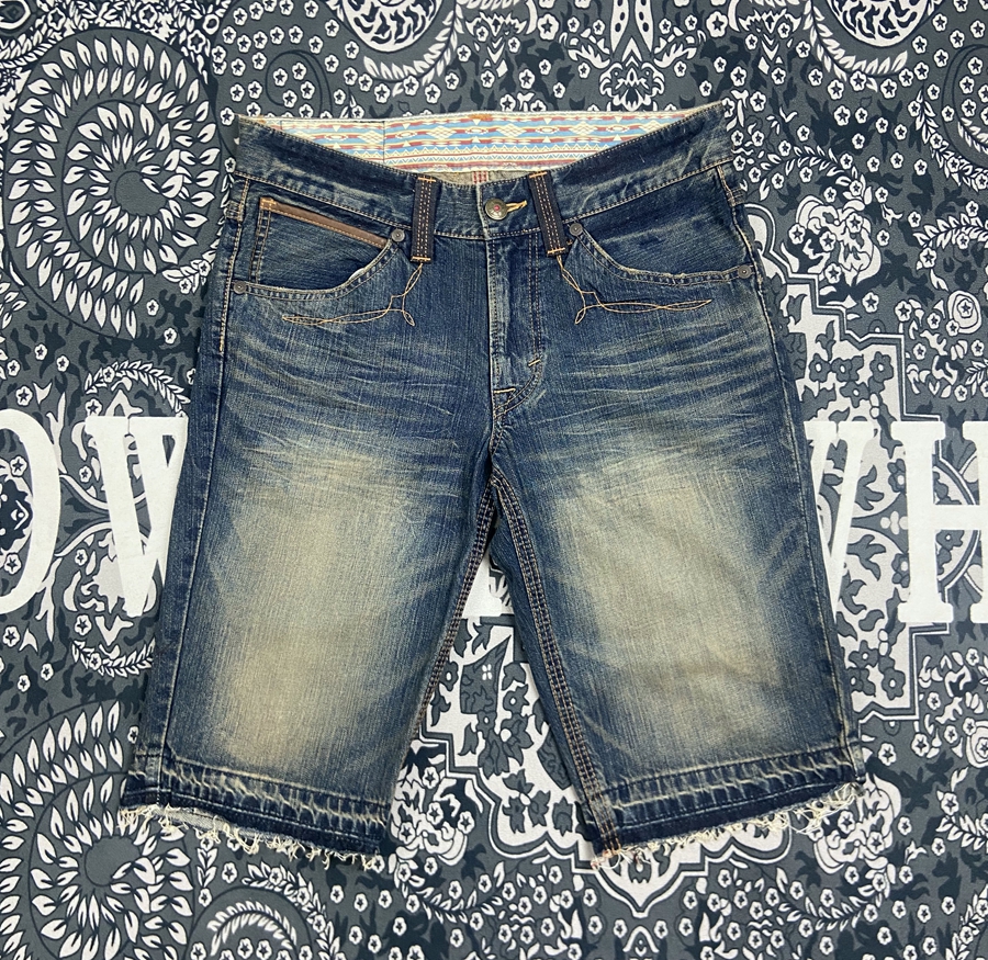 Summer new Japanese single American retro EDWI XV404 old crumpled frayed washed denim shorts khaki
