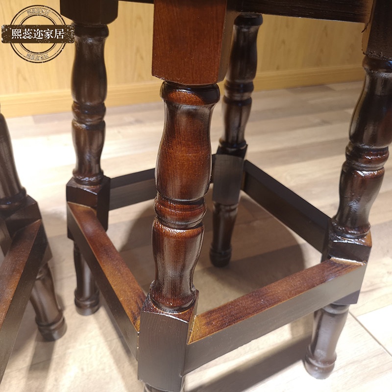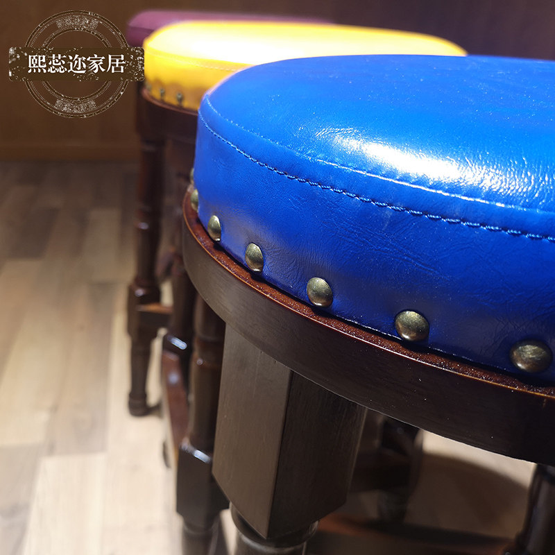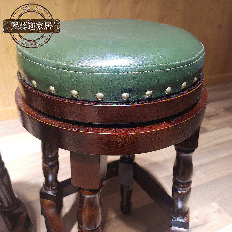 Oil wax leather not turned oil wax belt to change height plus 10 modified stool frame color plus 30 European-style solid wood deposit (without leather cushion)