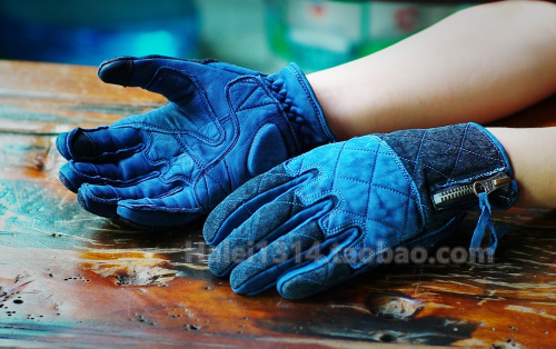 Spot Retro Denim Tannin Bull Leather Hareen Gloves Touch Screen Rider All Finger Indian Iron Warm-Taobao