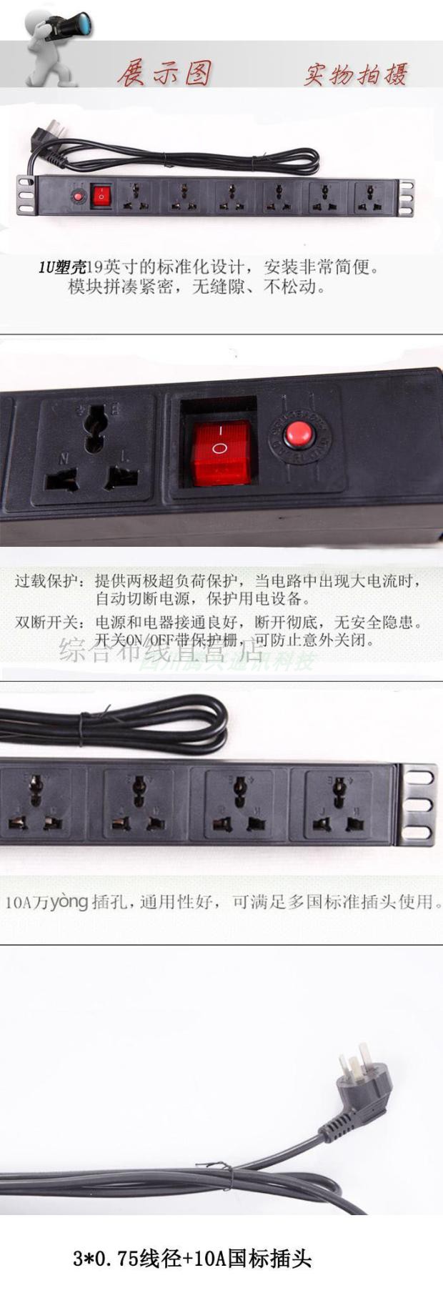PDU enclosure private socket 6 bits PDU plastic shell inserts 10A switch overload power protection rack proof