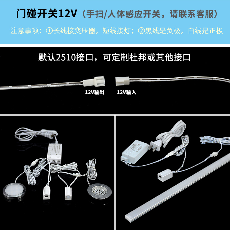 Door touch switch led wardrobe light when the door is opened, the door is on and the door is off, the door infrared blocking sensor switch 12V36W