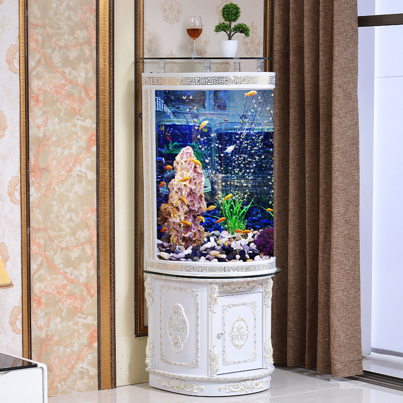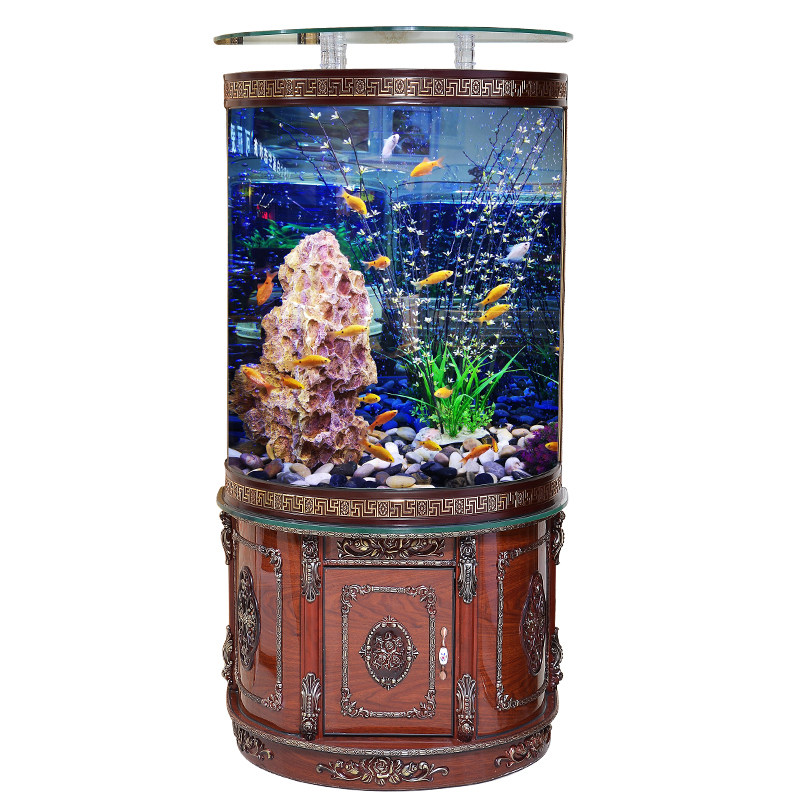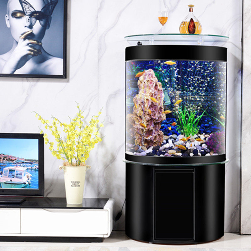 Round Fish Tank aquarium Medium Living room Home Lazy People Bottom Filter Exempt Water Eco Gold Fish Tank Made of View Glass