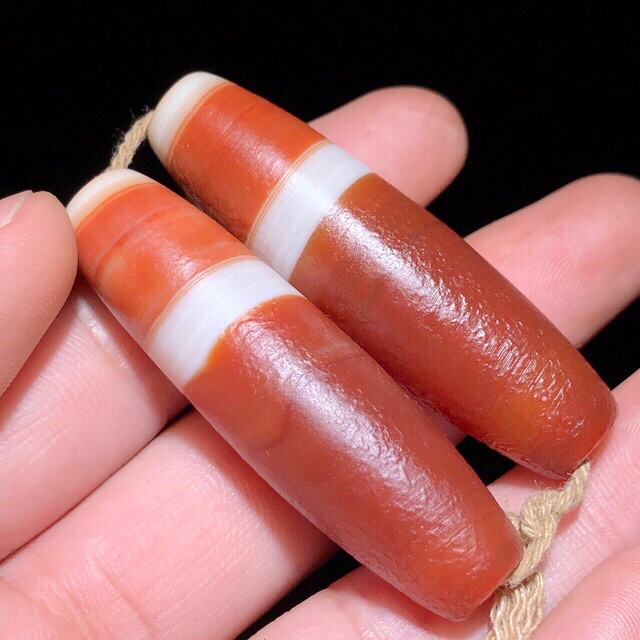 R0123F8 - Old Manau Red Cord Cord - Tibetan old mine red agray beads a pair of 50mm32g
