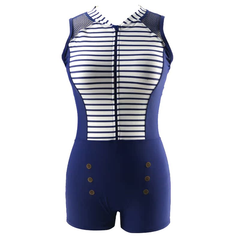 Flight notes Li Xiaofan striped boxer one-piece swimsuit female slim conservative back small sexy