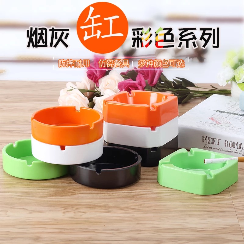Color melamine square ashtray round plastic ashtray bar Internet cafe living room ashtray can be customized logo