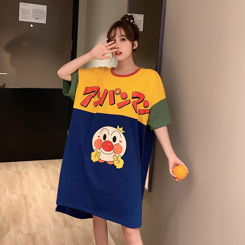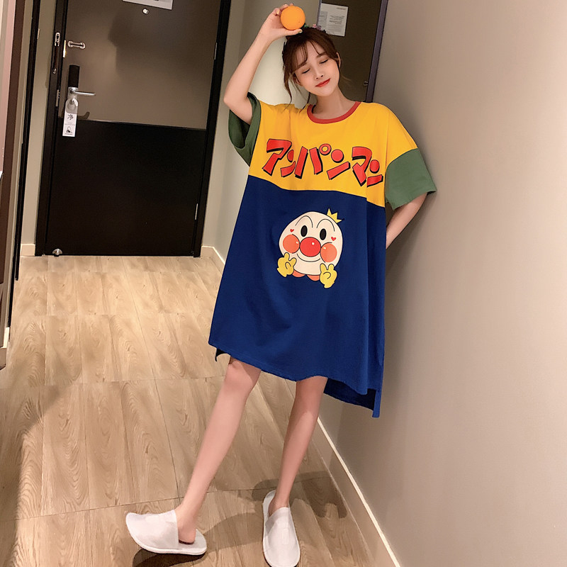 Japanese bread superman nightdress women's summer thin loose cartoon cute short-sleeved cotton pajamas home clothes