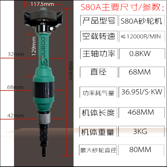 JUBOO Jubai pneumatic S80A grinder pneumatic straight sand grinder inner hole grinding and polishing air grinding engraving machine
