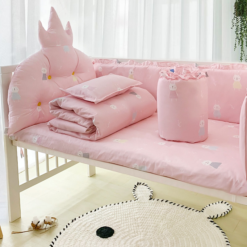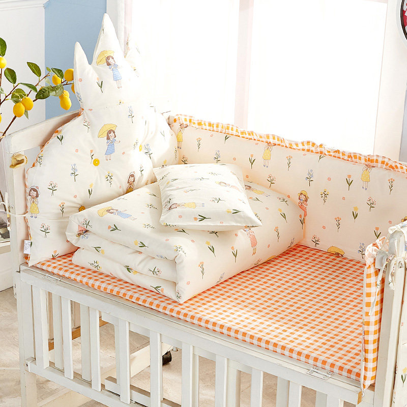 Crib bed perimeter anti-collision pure cotton children's splicing bedding set soft bag retaining cloth five-piece cotton bedding